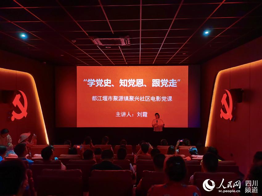 9日下午4時(shí),這所“鄉(xiāng)村電影黨校”正式開課,聚源鎮(zhèn)聚興社區(qū)黨支部書記劉霞為社區(qū)黨員群眾上了第一堂電影黨課。以后,聚源鎮(zhèn)黨委、聚源鎮(zhèn)19個(gè)村和社區(qū)的黨支部,將陸續(xù)在這里開展主題黨日活動(dòng)。