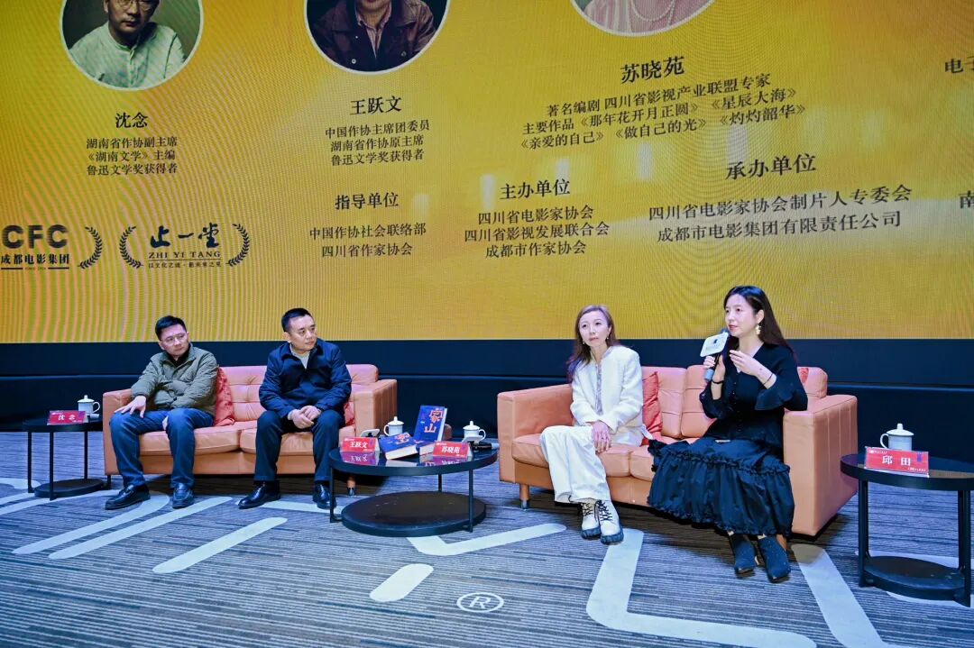 12月29日19:00,“跟著‘大家’看電影”項(xiàng)目第三期活動(dòng)在成都新明電影院5號(hào)廳如期舉行,豪華的嘉賓陣容吸引了約200名觀眾參與這場(chǎng)文學(xué)與影視融合的文化盛宴。本次活動(dòng)由中國(guó)作協(xié)主席團(tuán)委員、湖南省作協(xié)原主席、魯迅文學(xué)獎(jiǎng)得主王躍文擔(dān)任主講嘉賓。同樣是魯迅文學(xué)獎(jiǎng)得主,湖南省作協(xié)副主席、《湖南文學(xué)》主編沈念;擁有《那年花開月正圓》《星辰大海》《做自己的光》《灼灼韶華》等作品的著名編劇蘇曉苑擔(dān)任對(duì)談嘉賓。青年評(píng)論家、成都電子科技大學(xué)文學(xué)院副教授、文學(xué)博士邱田擔(dān)任學(xué)術(shù)主持。